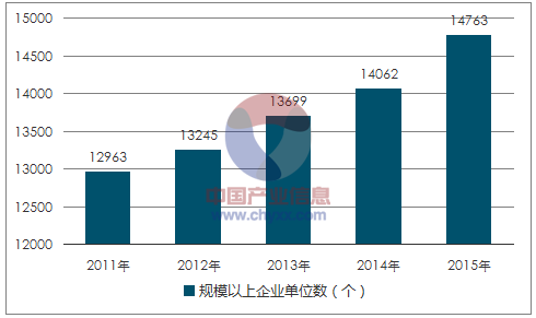 2011-2015 年我(wo)國塑料制(zhi)品行業規(guī)模以上企(qi)業數量情(qing)況